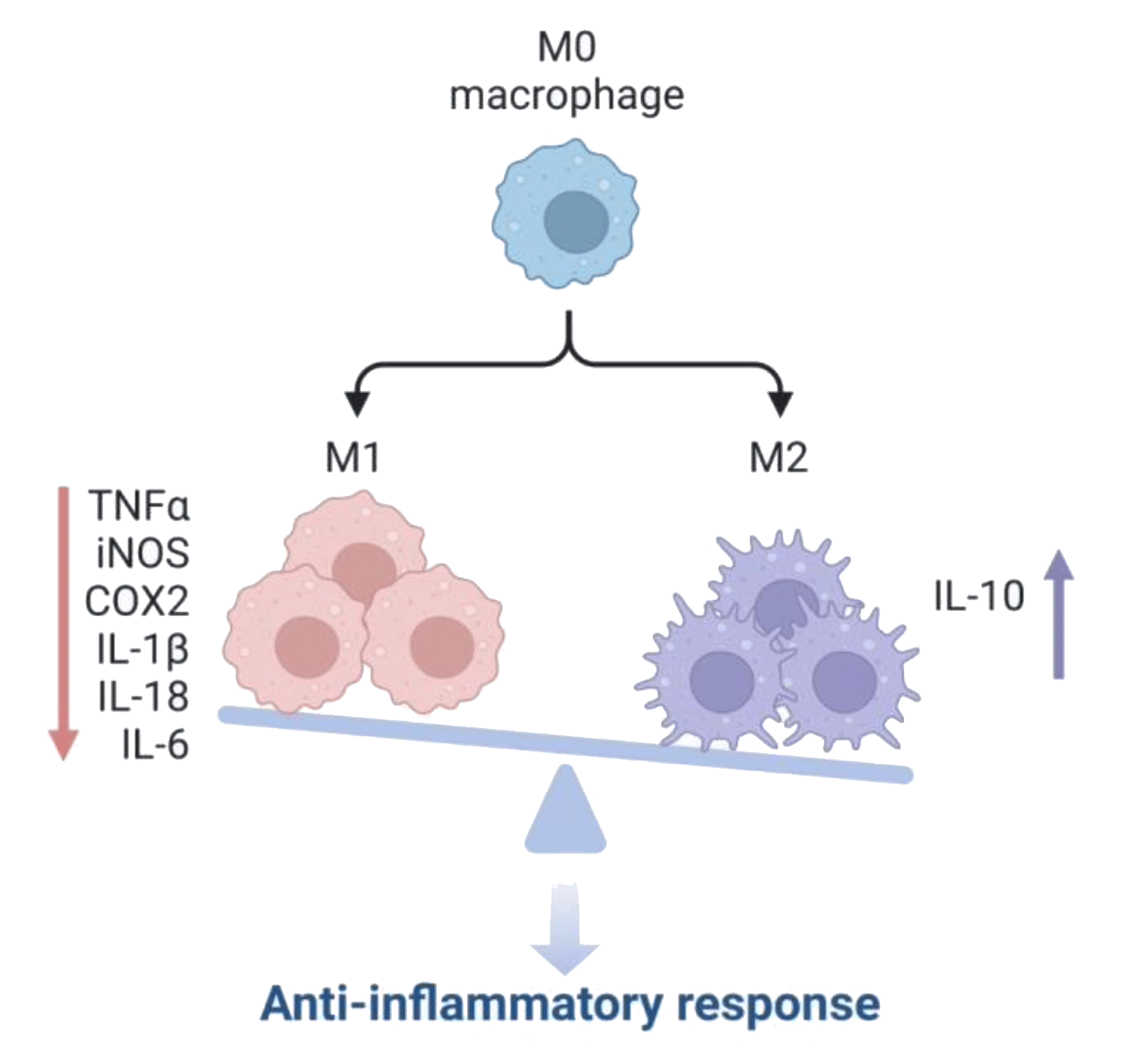 1. PROCESO ANTIINFLAMATORIO: La tecnología QMR reduce la inflamación local al polarizar los macrófagos M1 hacia los macrófagos M2 (los antiinflamatorios)
